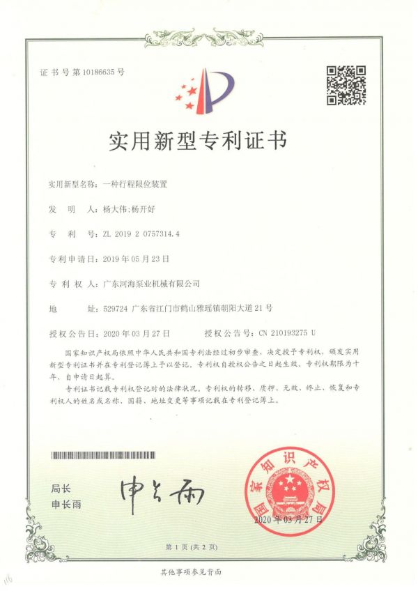 实用新型专利证书